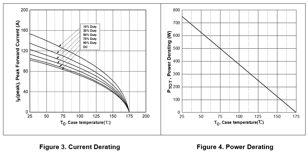 | Non-Repetitive Forward Surge Current | IFSM | TC=25˚C, tP=10 ms, Half Sine Pulse | 150 | A | |